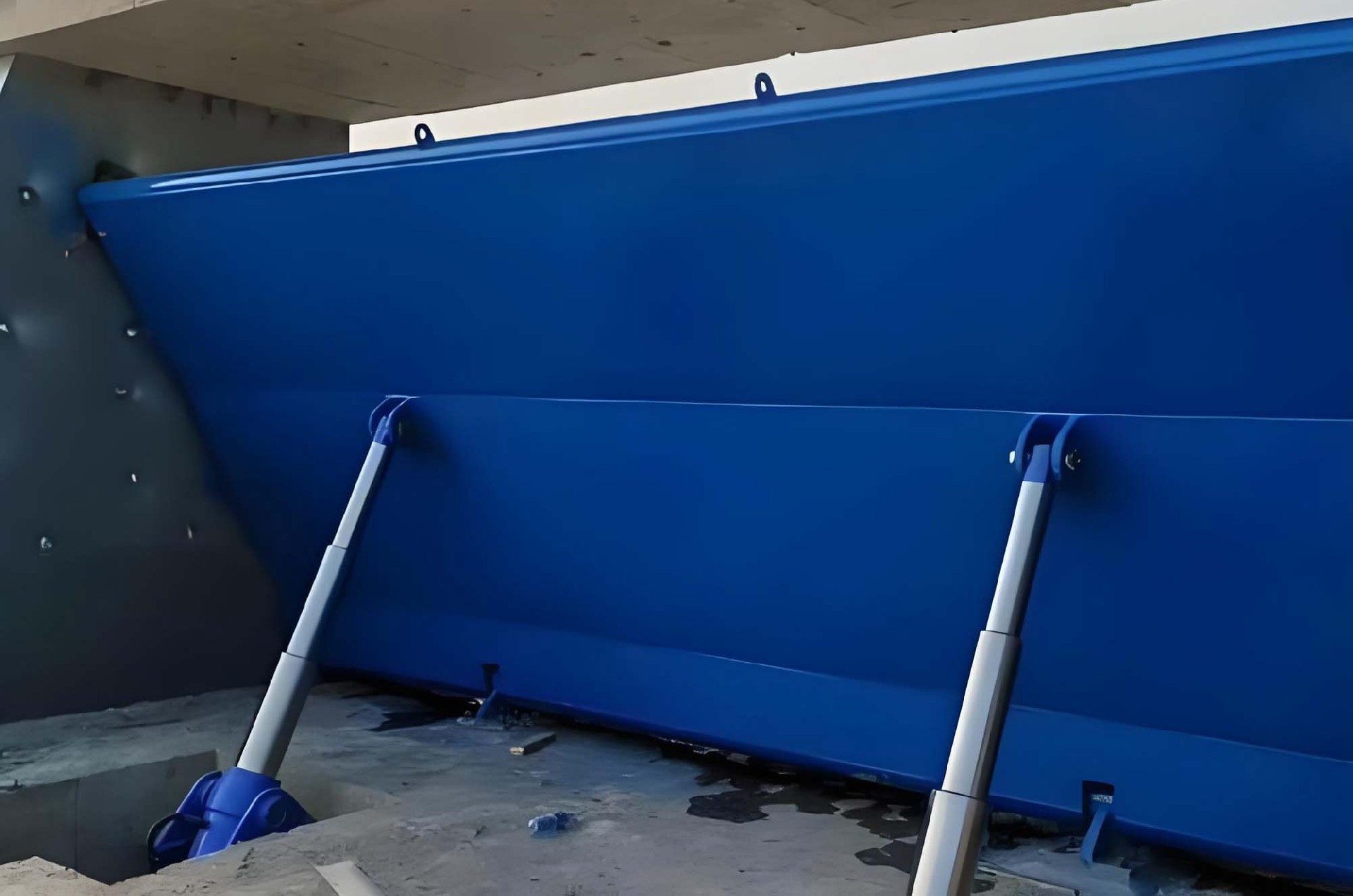 简单说,它由主坝体、支铰系统、配重块、底座、止水装置等组成。当上游水位上升,水流对坝体产生压力,推动坝体绕支铰旋转,自动翻转挡水;当水位下降,配重块和重力作用使坝体回位,实现自动关闭。整个过程无需电力干预,靠水力平衡完成,稳定又可靠。